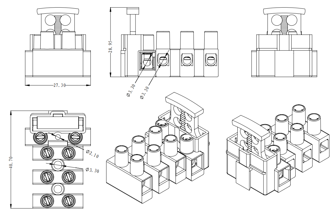 | 連接容量 | 實芯線 | 2.5-4.0mm2 | 0.5-4.0mm2 |
