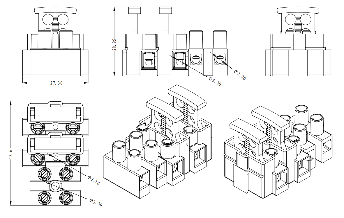 | 連接容量 | 實(shí)芯線 | 2.5-4.0mm2 | 0.5-4.0mm2 |