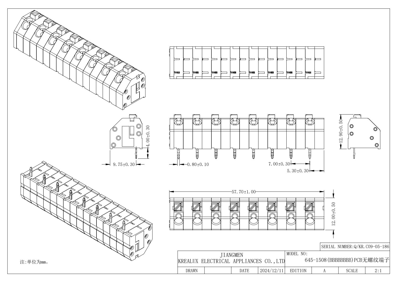 | 絕緣材料 | 材質 | 聚酰胺66 |